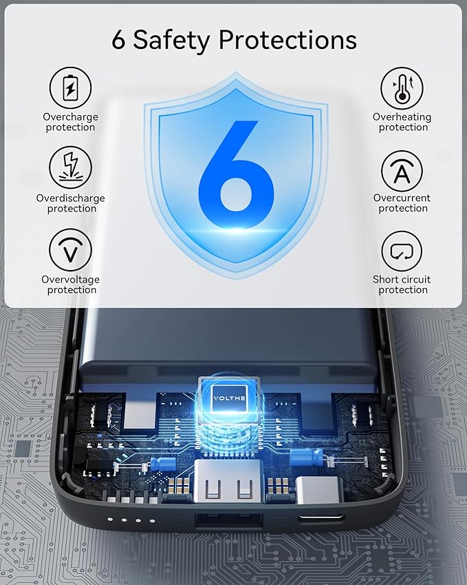 VOLTME Portable Charger, Slim 10000mAh 5V/3A Power Bank, USB C in&Out High-Speed Charging Battery Pack, Travel Essentials Dual Output Compatible with iPhone 17 16 15 14 13 12 Samsung Google iPad etc