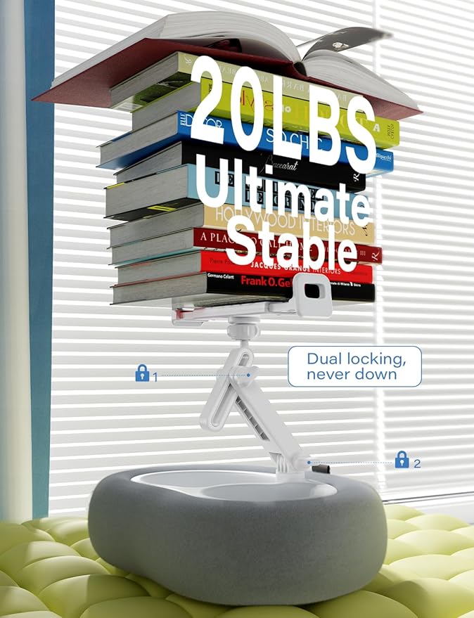 - ADJUSTABLE, STABLE, AND SAFE: With a high-strength ABS adjustable rod and two easy-to-use knobs, you can set the kindle stand for reading in bed to any desired angle, and once locked, it stays firmly in place. No more worrying about your tablet or Kindle slipping or tipping over. Whether you're lying back in bed or relaxing on the couch, this ipad stand will hold your device securely, providing you with hands-free comfort for hours of reading or watching. That tablet stand is a new try in life