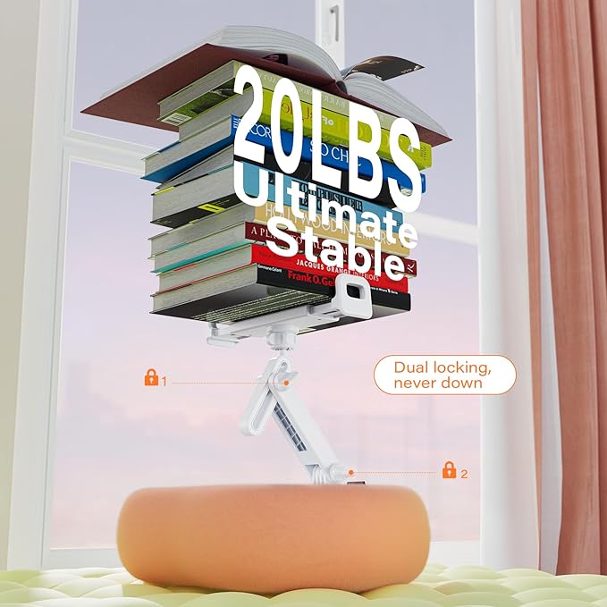 - ULTRA STANBE, 360° ADJUSTMENT: This kindle stand for reading in bed is designed for exceptional stability, featuring reinforced ABS rods and 2 locking nuts, supporting up to 20 lbs without tipping over or falling. That ipad stand lets you easily position your device at any comfortable angle for reading, watching, or video calls. Its sturdy construction ensures long-lasting use, while its versatile design makes it ideal for home and office, delivering a superior, hands-free experience