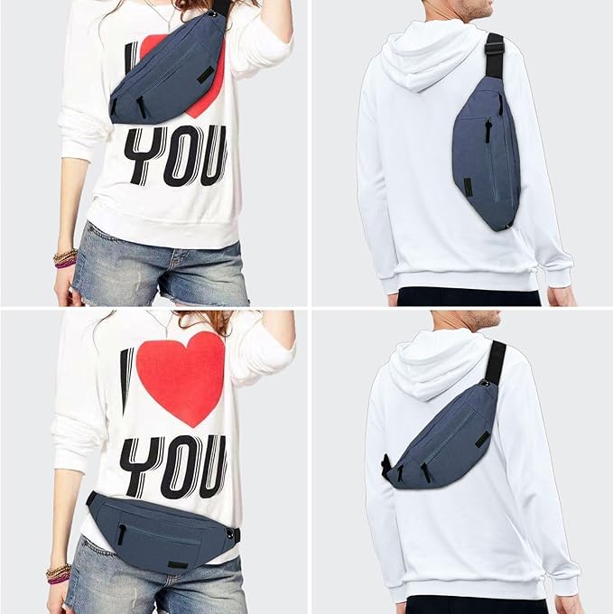 - Changeable Style Cross body Fanny Packs for Women Men,Many Ways to Wear — Since the comfortable long strap is widely adjustable for most waist size(20” - 50”).There are many ways to wear this fanny pack -(1) As a Crossbody Bags for Women Men or a Sling Fanny Pack:Slant across your chest or over You shoulder. (2)As a Waist Belt Bag:Wear it in front of your waist (3)As a Hip Pack:Back on your hip. Perfect for various occasions.