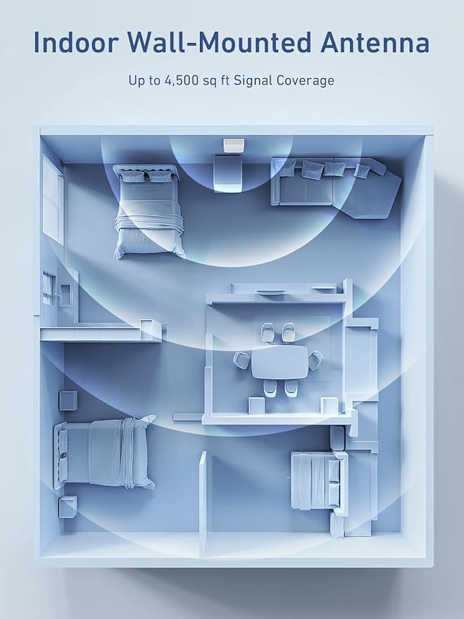 Cell Phone Signal Booster for Home | Boosts 4G LTE & 5G on Band 2/4/5/12/13/17/25 | Up to 4,500 Sq Ft for Verizon AT&T and All U.S. Carriers | APP Online Support | FCC Approved