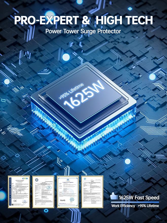 - 【Surge Protector with Multiple Safety Protection】This surge protector power strip has multiple safety protection including 1800J surge protection, 1625W overload protection, 1382℉overheat protection and short-circuit protection. Protect your expensive devices from accidents like lightning and overload.