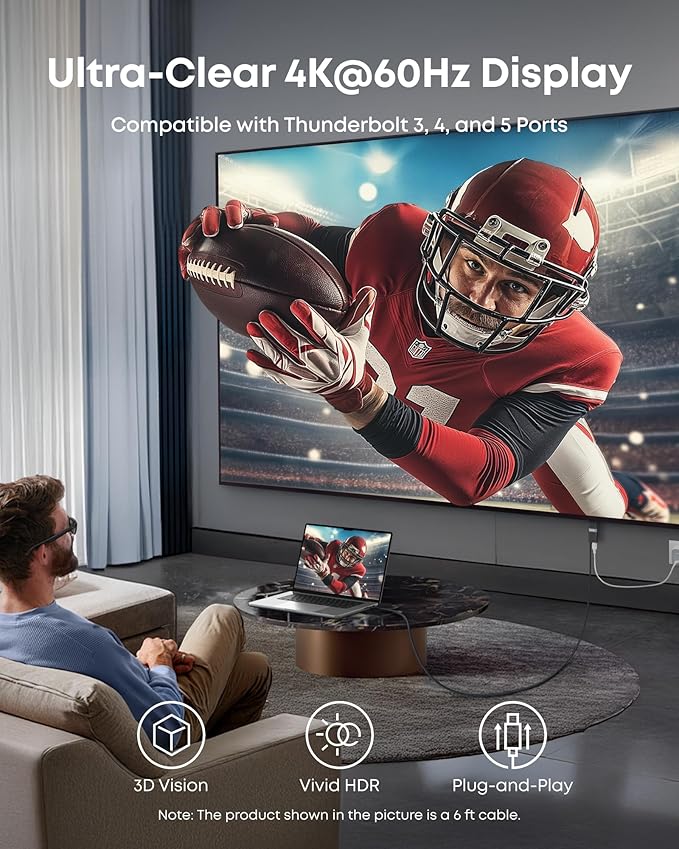 - Crystal-Clear 4K Display: Watch as your favorite shows and games come to life with stunning 4K@60Hz clarity, compatible with Thunderbolt 3, 4, and 5 ports.