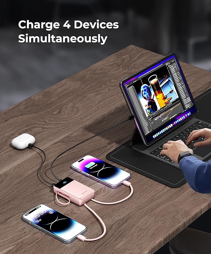- 【Four Devices, One Charge】With 30000mAh capacity, our banks can offer 5.5 charges for the iPhone 15, 4.6 charges for the Samsung S24, and 2.7 charges for the iPad Pro. Charge 4 devices max at once, it's a must in accessories for a power outage, hurricane preparedness, and emergency. Perfect for a cruise ship travel/road trip/car journey/hiking/camping/summer day at the beach/college dorm room