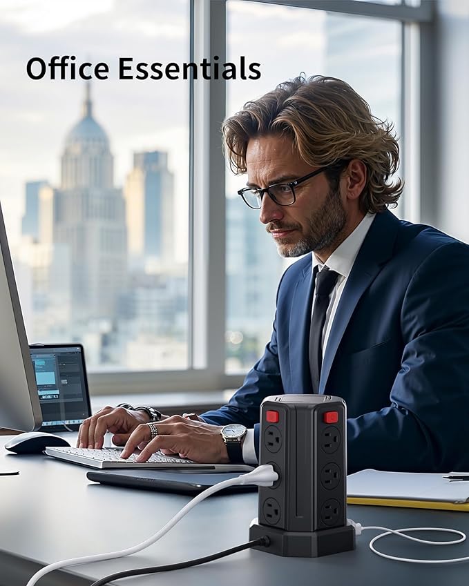 - 【Multiple Outlets Surge Protector Power Strip Tower】Our power strip tower has 12 outlets, 3 USB-A and 1 USB-C,giving you more charging options; Ideal for USB devices like cell phone, tablet, earphone, etc