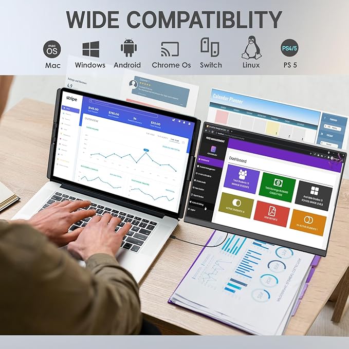 - 【Wide Compatibility & Reliable Support】Portable monitor for laptop is compatible with Windows/Mac OS/Chrome/Linux. such as laptops, desktops, mini PCs, game consoles and some smartphones (Which have the full-featured Type-C port and support micro-computer mode).If you encounter connection problems or other situations, please contact our after-sales team directly, we will provide you with satisfactory solutions.