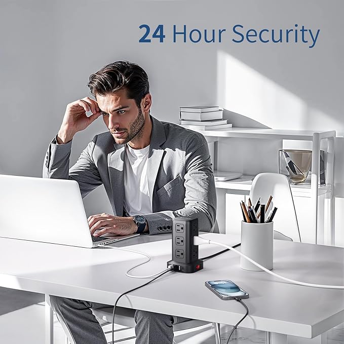 - Safe and Reliable Power Tower: To protect you and your valuable electric equipment, this power strip tower adopts advanced protection technology and has passed FCC, RoHS safety certification, with surge protection, overload protection, lightning protection and short-circuit protection.