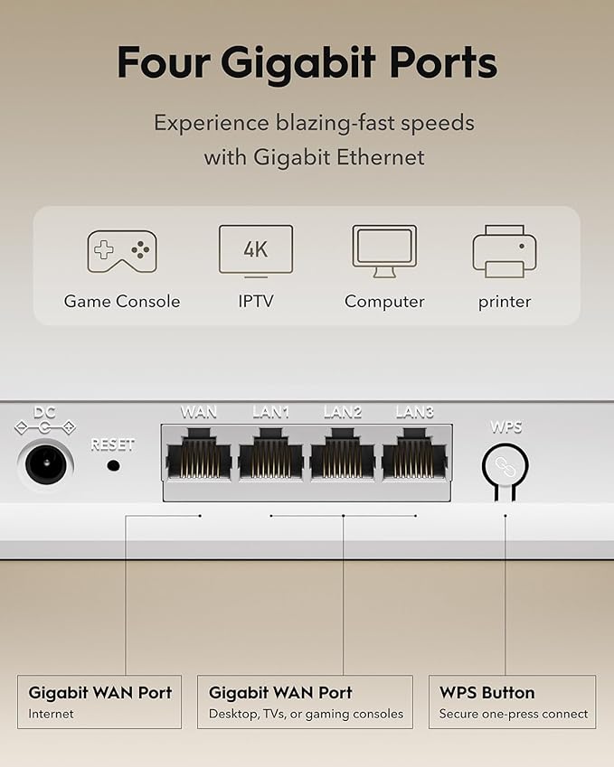 - High-gain antennas : Four external antennas boost your Wi-Fi signal, while beamforming technology intelligently targets devices to kill signal dead zone.