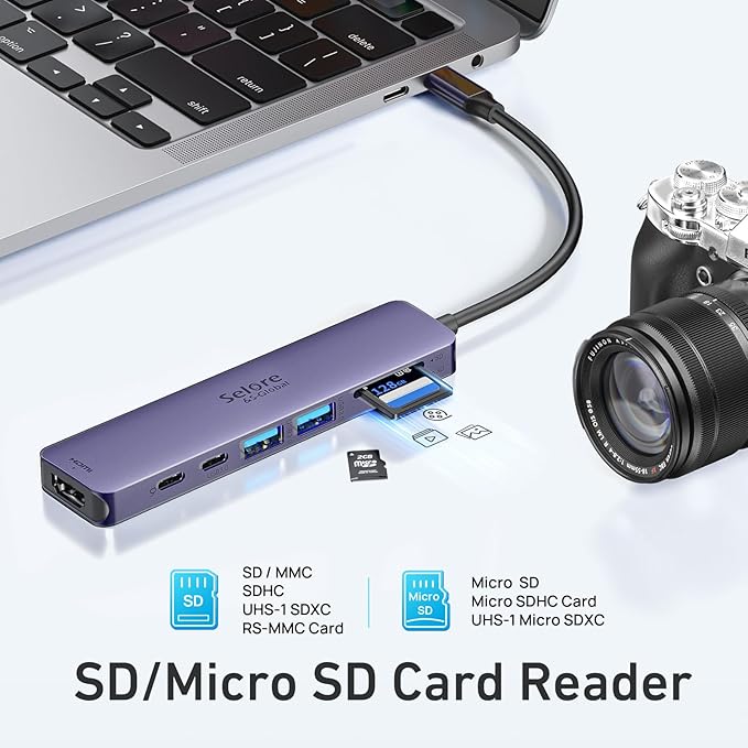 - Convenient SD/TF Card Reader: USB C Adapter for MacBook only needs a few seconds to complete the reading speed, super fast to upload and download your data; Convenient USB-C adapter to access files from SD/TF card reader and perfect for photographer or designer, etc