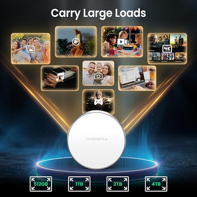 - Wide Compatibility for Effortless Integration: The DIGIERA solid state drive features universal compatibility with a USB Type-C interface, working seamlessly with laptops, tablets, gaming consoles, and most smartphones. Its plug-and-play functionality means instant access for students, freelancers, and multitaskers on the go. NOTE: Only compatible with iPhone 15 series and newer. Not compatible with iPhone 14 and earlier models