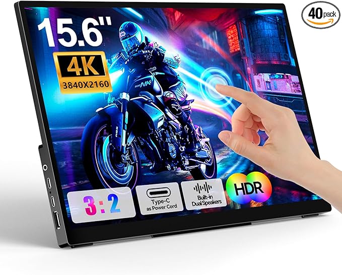 4K Portable Touch Monitor, 15.6" inch 3840 * 2160 UHD w/USB-C HDMI Laptop Monitor, 2000:1 100% RGB IPS ,Aluminum Alloy Shell,10-Point Touch,Dual Speaker, HDR, for Home, Work