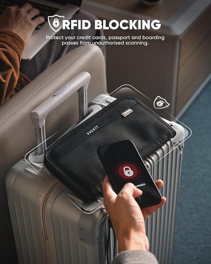 VULKIT Passport Wallet Passport Family Holder RFID Blocking Travel Card Organizer with Wrist Strap for Men or Women(Black)