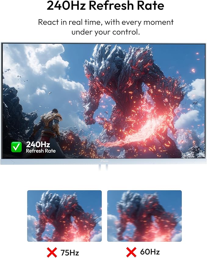 - BLAZING FAST 240 REFRESH RATE - Experience lightning-fast 240Hz refresh rate and 1ms GTG response time for seamless gaming and competitive edge.