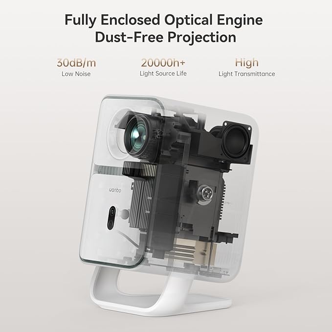 - [Dust-Free Fully Sealed Optical Engine] – The fully sealed optical engine protects against dust and ensures long-lasting clarity. With ultra-low 30dB noise levels and a 20,000-hour light source lifespan, this smart proyector offers a quiet, durable viewing experience ideal for long sessions.