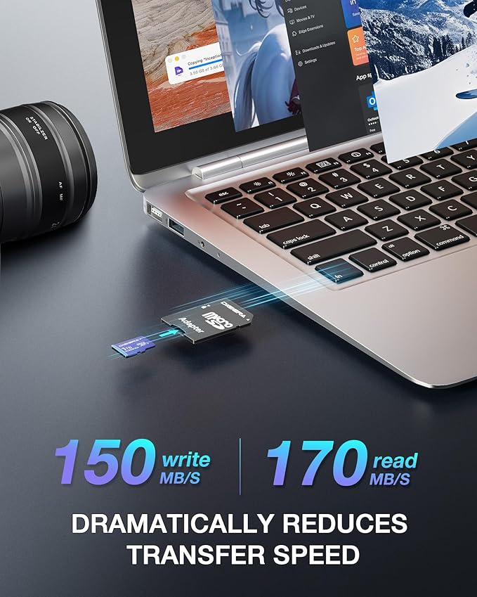 - Universal Compatibility Across Devices: Equipped with SDXC technology and an included SD adapter, this mini SD card is compatible with smartphones, tablets, laptops, cameras, drones, gaming consoles, security cameras, and more. Your all-in-one storage solution for diverse devices