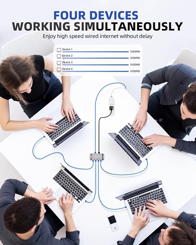 - Ethernet splitter 1 to 4 & Ethernet Switch 4 port: Expand your network instantly with the 4 port switch! This 1000Mbps ethernet splitter connects one input to four devices, perfect for sharing high-speed internet among gaming consoles, PCs, and smart TVs. Universal compatibility with Cat5/5e/6/7/8 cables ensures seamless integration.