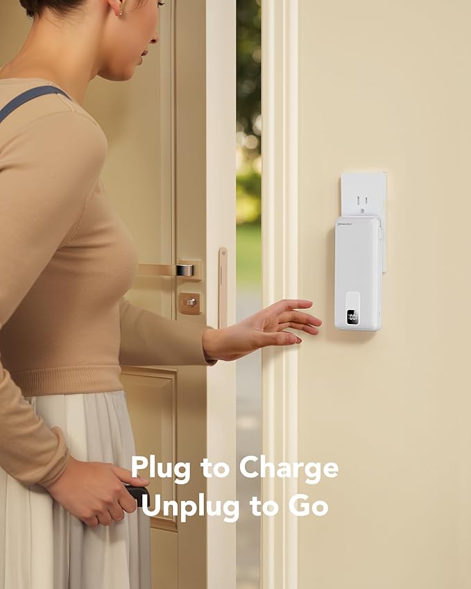 - 【Built-in Wall Plug for convenience】Plug to charge, unplug to go. No cables needed. Just power up at home, office, airports, or coffee shops—wherever there’s an outlet. While everyone else digs through bags for cables, you’re already charging. Secure limited outlets in seconds. Portable charger wall plug also supports 100-240V voltage worldwide. Whether you’re traveling to Canada, Mexico, Japan, or beyond—just plug and charge. No voltage converter needed. The simplest way to power up. A must have for travel and business trips