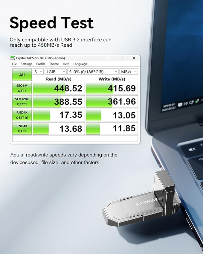 - 【Enhanced Performance】Boosting the read and write speed up to 450MB/s and 400MB/s, this USB 3.2 flash drive enables quick backup and access to large datasets, high-resolution videos, and images, significantly enhancing efficiency and productivity