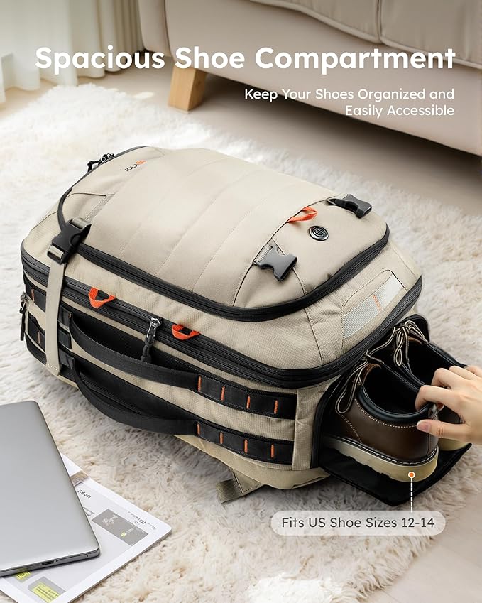 - ✅ 【Effortless Organization】Stay organized with a dedicated laptop compartment (fits up to 17.3")and an extra padded sleeve for smaller devices (up to 15.6"). The separate shoe compartment (fits size 14) and two aluminum-lined dry-wet pockets of the travel backpack prevent odors and moisture. Plus, the built-in USB charging port lets you charge devices hands-free!
