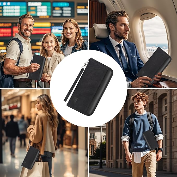 - Boonbery Passport Holder Family, RFID Blocking Travel Passport Wallet for 4-6 Women Men, Waterproof Travel Document Organizer Credit Cards Case, Portable Passport Bag with Zipper Pocket-Black