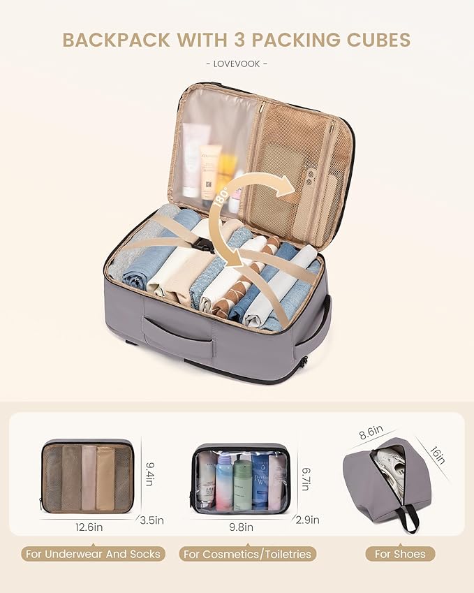 LOVEVOOK Travel Backpack for Women & Men, 40L Large Carry On Backpack Airline Approved, TSA Personal Item Weekender Bag, Water Resistant Laptop Backpack with 3 Packing Cubes for Travel Essentials