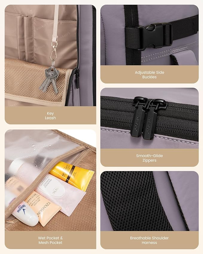 - 【180° Suitcase-Style Opening】The travel backpack offers a 180-degree opening main compartment for easy packing and quick access to your items, ideal for speedy security checks and on-the-go organization
