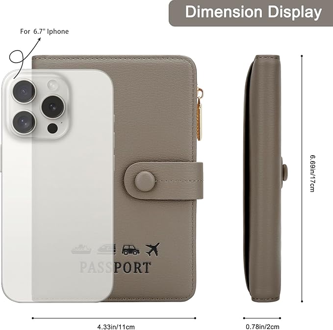 - Passport Holder for Travel- Passport Wallet Size: 4.33"(L)*0.78"(W)*6.69"(H); Weight: 0.33 lb. This women's travel passport wallet is portable size and come with multiple slots, enough room to store your all travel accessories