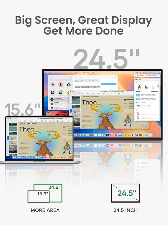 - 24.5” Massive Portable Monitor: The oversized 24.5” monitor, with its stylish and lightweight design, allows you to take it anywhere without worrying about the hassle of heavy equipment, effectively enhancing your visual enjoyment while achieving a perfect combination of size, portability, and performance(For Safety & Comfort: Set monitor height correctly, place your monitor level with or slightly below your eyes. Tilting it too far downward stresses the stand and increases fall risk, especially with large screens.)