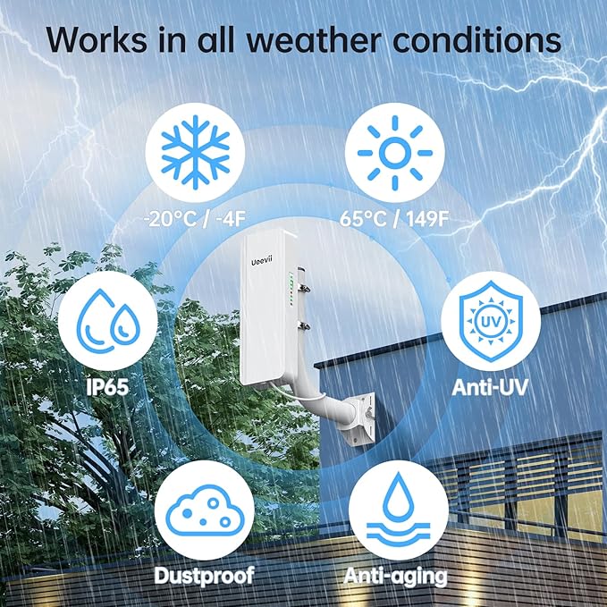 UeeVii Dual-Band Wireless Bridge Router Kit | 2.4G 5.8G WiFi Bridge | 5KM Point to Point Wireless Bridge Outdoor Network Starlink Extender for Barn/Shop | IP65 Weatherproof | Plug & Play