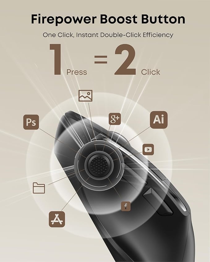 - 【Firepower Button】Double-Click in a Flash! This USB mouse features a dedicated double-click button for lightning-fast operations. Ideal for graphic designers and gamers, it enables instant document access and rapid-fire actions in shooting games. Whether you're working or gaming, this wired & wireless mouse keeps you one step ahead.