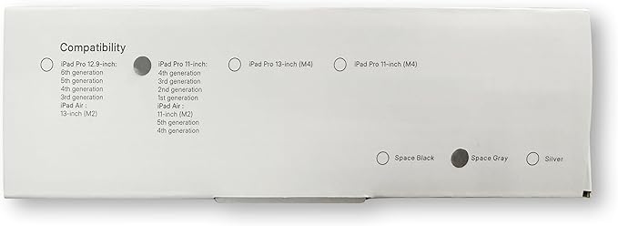 - Compatible Devices : 【iPad Pro 11" Gen 1-4 (A1980/A2013/A1934/A2228/A2068/A2230/A2377/A2459/A2301/A2759/A2761/A2435)】 | 【iPad Air 10.9" Gen 4 (A2316/A2324/A2325/A2072) | iPad Air 11" M2 (A2902/A2903) | iPad Air 10.9" Gen 5 (A2588/A2589/A2591) | iPad Air 11" M3 (A3266/A3267)】 【iPad Pro 11" Gen 1-4 (A1980/A2013/A1934/A2228/A2068/A2230/A2377/A2459/A2301/A2759/A2761/A2435)】 | 【iPad Air 10.9" Gen 4 (A2316/A2324/A2325/A2072) | iPad Air 11" M2 (A… See more