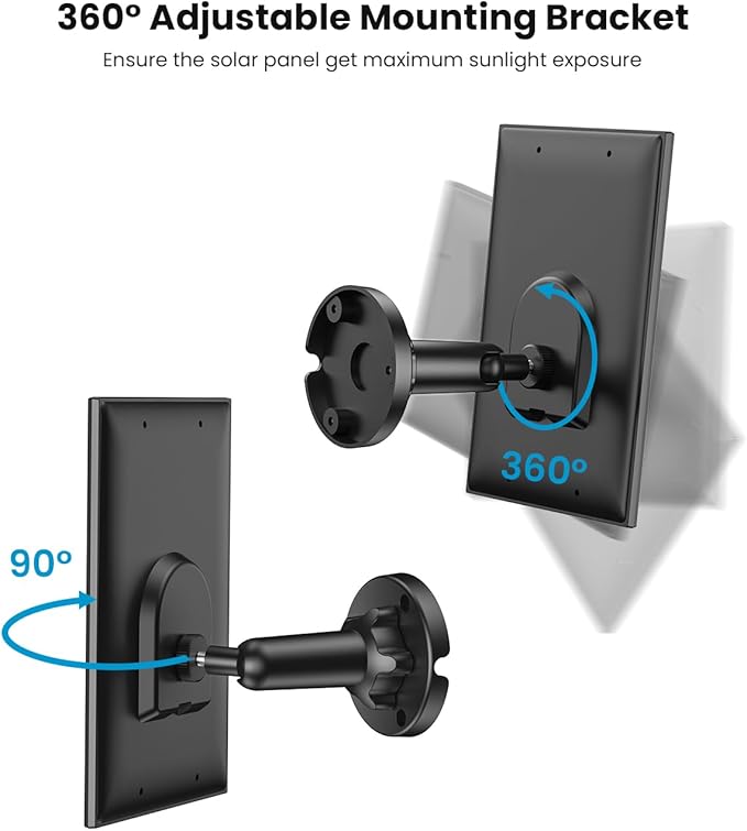 - 【Hassle-Free Installation】 Simply mount the panel bracket, fix it to any wall or surface, and connect it to your camera. In just a few minutes, your camera will be running on unlimited solar energy.