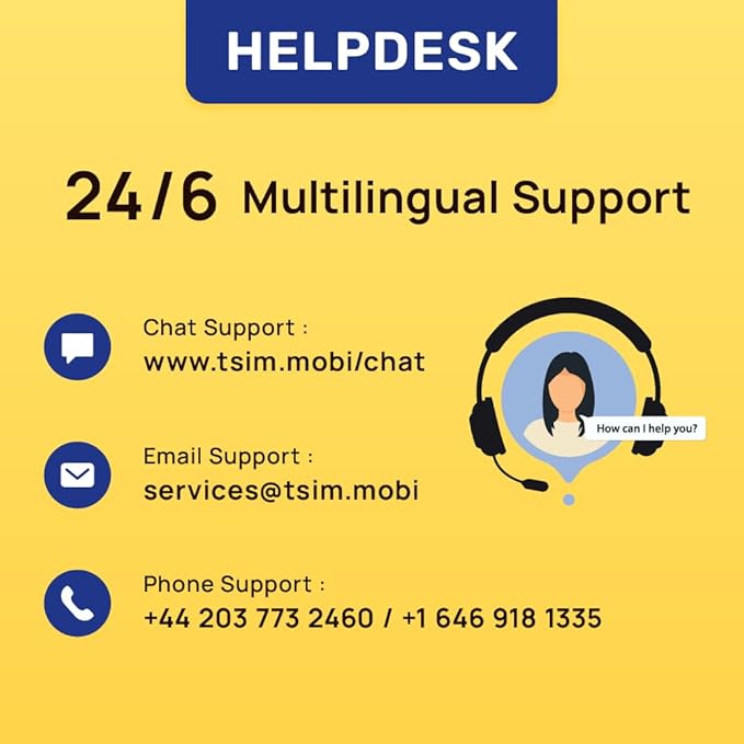 - 24x6 MULTILINGUAL SUPPORT: Get assistance in multiple languages via phone, email, or InstaChat (tsim.mobi/chat), Monday to Saturday. Contact details are included with the packaging.