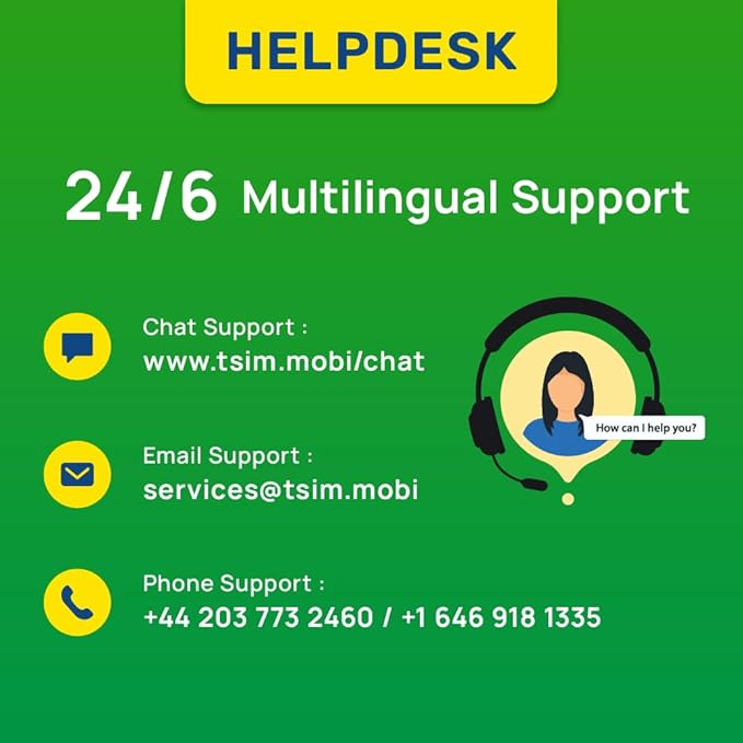 - 24x6 MULTILINGUAL SUPPORT: Get assistance in multiple languages via phone, email, or InstaChat (tsim.mobi/chat), Monday to Saturday.