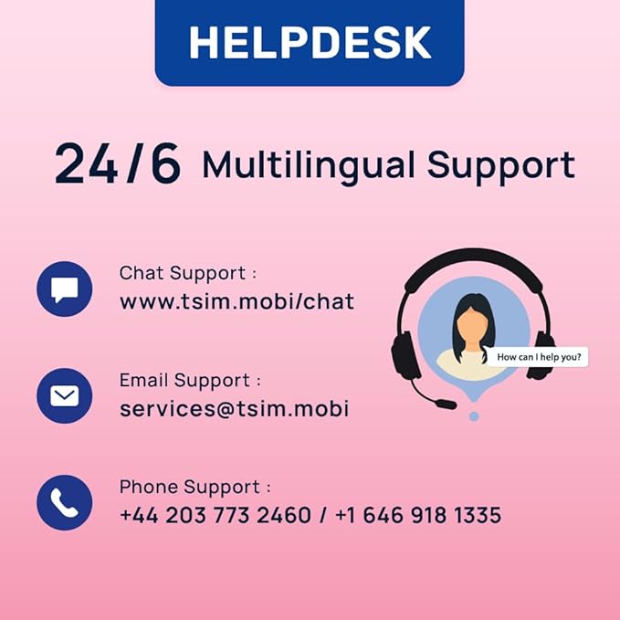 - 24x6 MULTILINGUAL SUPPORT: Get assistance in multiple languages via phone, email, or InstaChat (tsim.mobi/chat), Monday to Saturday. Contact details are included with the packaging.