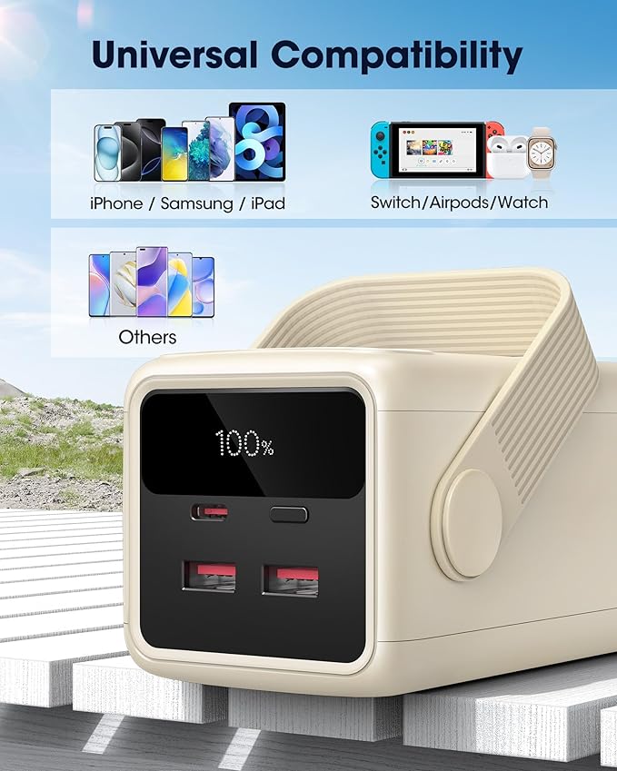 - LED Digital Display and Portable Strap Portable Charger -- The top of the cell phone charger power bank is equipped with a soft, portable handle, making it easy to carry and convenient to stow in your backpack or hold in hand without any burden during outdoor use. Portable battery pack also features a precise LED digital display that shows the remaining power percentage in real time, ensuring you have peace of mind while charging on the go