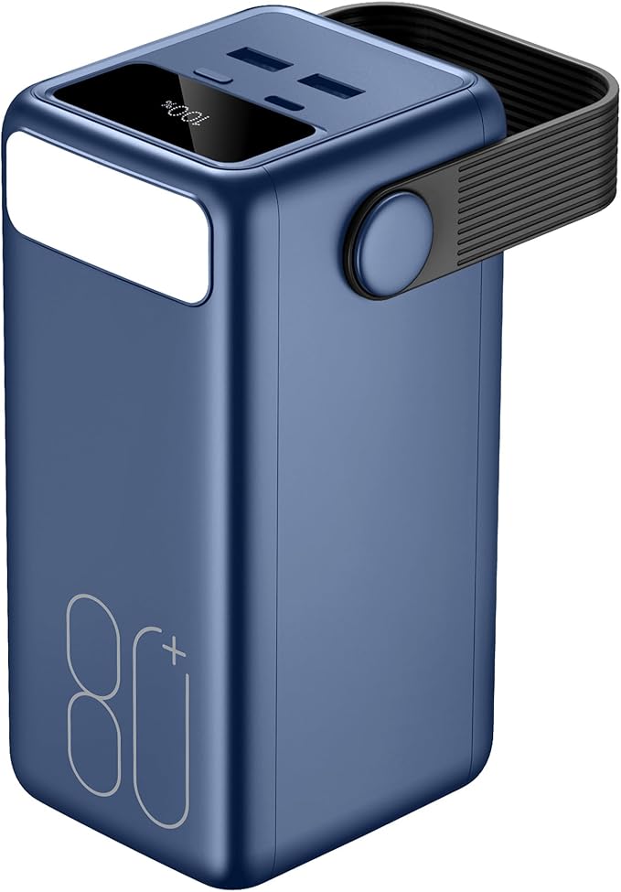 - Ultra High Capacity 80000mAh Power Bank -- The portable charger 80000mAh has a huge 296Wh capacity, measures 5.79 x 3.74 x 3.03 in, and weighs 41.92 OZ (about 2.62lb). It can charge a smartphone about 12 to 23 times and provides power for over weeks, ensuring you stay connected during camping, travels, or unexpected power outages caused by hurricanes. (Note: 80000mAh power banks are not allowed on airplanes)