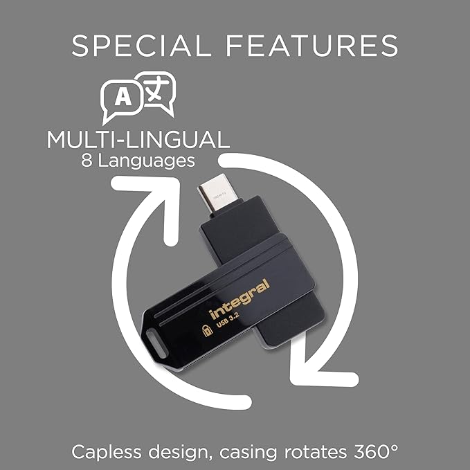 Integral Secure 360-C 128GB Software Encrypted USB Flash Drive - USB-C Connector - 256-bit AES encryption - Compatible with Mac, MacBook, PC, Laptop