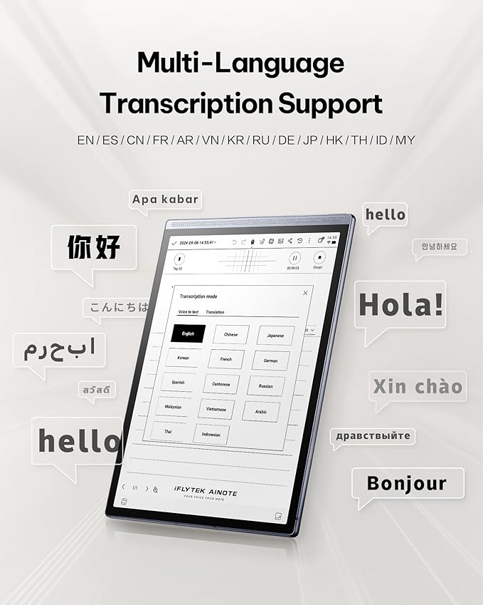 - 【8.2" AI Note-Taking & Summary Tablet】 iFLYTEK AINOTE Air 2 — an ultra-slim 8.2-inch digital notebook with real-time speech-to-text, multilingual translation, and ChatGPT-powered meeting summaries. Ideal for meetings, healthcare, and lectures.