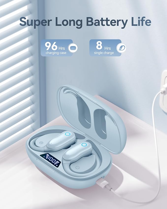 - 【Huge Battery Life with Power Display Charging Case】: On single fully charge, our Bluetooth earbuds last up to 8 hours. With portable charging case, it provides up to 96 hrs of continuous playback, ensuring that your music never has to end. The dual led display easily monitors the real-time battery levels of both the case and wireless earbuds on the go. Additionally, the Type-C fast charging capability makes recharging the sport headphones a breeze and let you dive back into your groove.