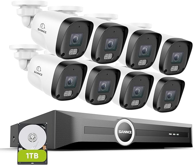 SANNCE 8CH 6MP Surveillance PoE NVR System with 8PCS 2K 3MP HD IP Cameras with H.265 Video Compression, Smart IR LED, APP Push Alert, Remote Access (with 1TB HDD)