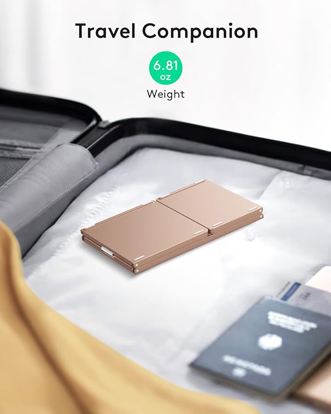 - 【Exquisite & Lightweight Portable Keyboard】Mild Pink matte exterior, made of ABS+PC material, lightweight but sturdy, without fear of daily wear and scratches. The elegant matte design, excellent touch and clean look make it a perfect match for your tablet, phone and laptop. Only 5.53-ounce, palm-sized keyboard can be folded up and carried around. Provide you with maximum convenience with minimal weight and size. It must be a good choice for editors!