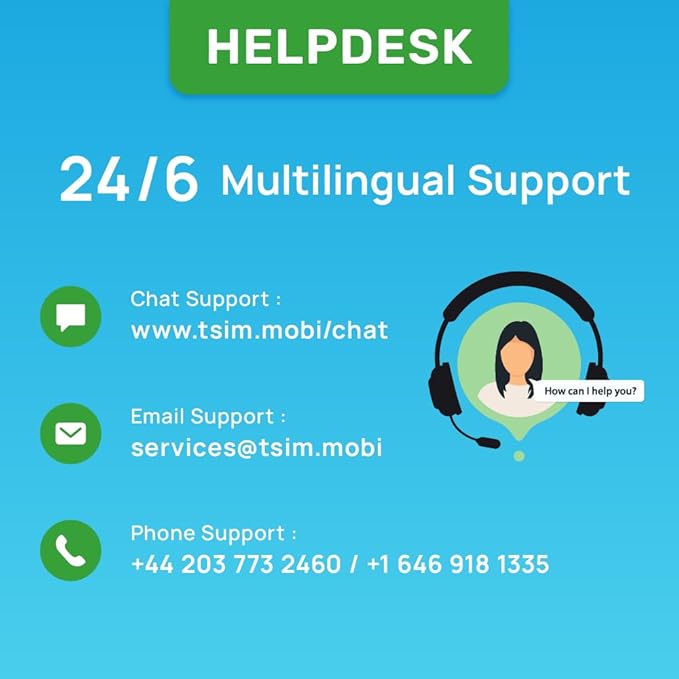 - 24x6 MULTILINGUAL SUPPORT: Get assistance in multiple languages via phone, email, or InstaChat (tsim.mobi/chat), Monday to Saturday.