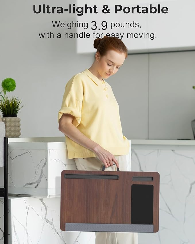 - Stay Organized: The lap desks for adults features tablet & phone slots for multiple devices and a fixed mouse pad. Laptop stand for bed make it convenient and organized for both work and leisure.