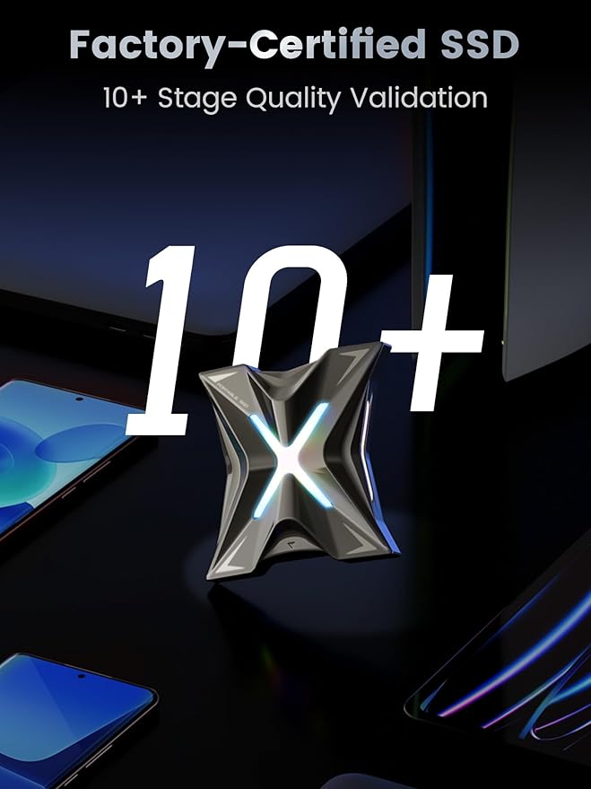 - Universal Plug & Play:Ps5 external hard drive works instantly across your tech universe - plug into PS5 for gaming expansions, iPhone 15 Pro for 4K video backups, or Windows/Linux rigs for code compiling. Includes 20Gbps USB-C cable No software needed - gamers edit streams, remote workers switch devices, creators shoot 4K, all on one SSD drive.