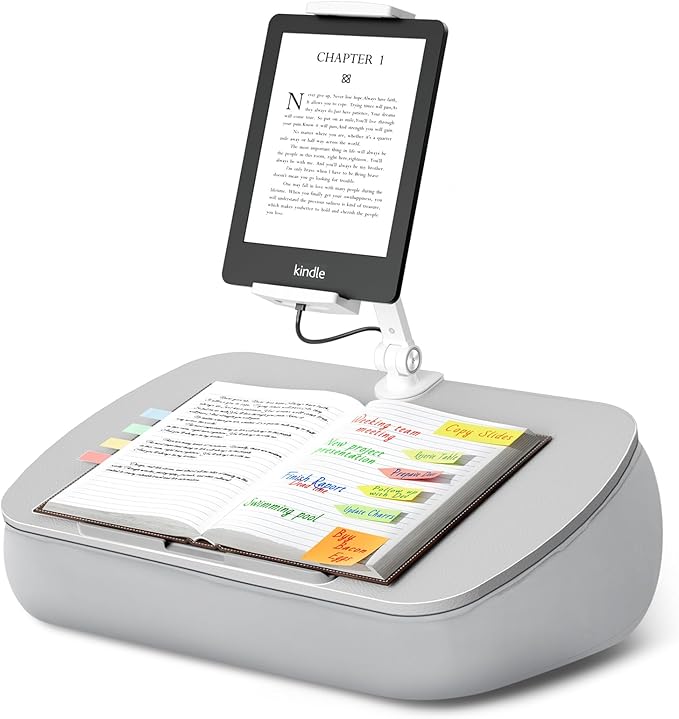 Lap Beanbag Cozy Kindle Pillow Stand for Bed with Adjustable Arm, 360° Tablet Holder, Fits 4.7"-13" Kindle, iPad, Phone, Laptop, Lap Desk for Hands Free Reading in Bed, Couch, Sofa(Light gary)