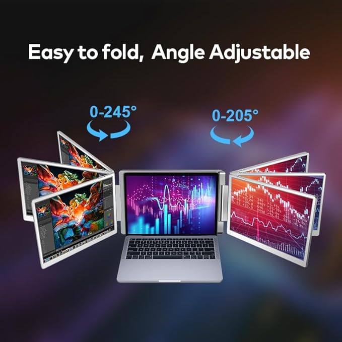 - [Boost Productivity by 3X] - Instantly transform your laptop into a portable triple-screen workstation with two extra displays for seamless multitasking. View spreadsheets, design tools, meetings, and chats simultaneously without constant tab-switching. Allowing you to handle different tasks at the same time which increase your office efficiency by 300% Supports extended, mirror, presentation, and split-screen modes for ultimate flexibility. Lightweight and travel-ready, making it the perfect companion for remote work, business travel, and mobile offices