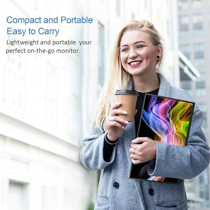 - Eye Care & Immersive Audio – Work and Play Comfortably! Designed for extended use, this portable monitor features advanced eye protection with Blue Light Reduction + Anti-Glare Coating + Flicker-Free technology—reducing strain for sharper, more comfortable viewing. Plus, enjoy built-in dual speakers for rich, clear sound, whether you're streaming movies, gaming, or video calls. Crisp visuals, easy on the eyes—and great for your ears!