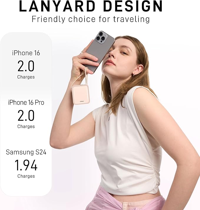 - COMPACT&PORTABLE: This portable charger power bank measures just 2.9 x 2.5 inches (credit-card size), offering a more compact overall footprint at only 176g. Its thoughtfully thicker build (1 inch) delivers greater capacity and rugged durability, while enhancing grip comfort. With a built-in cable and sleek design, this rechargeable phone charger slips effortlessly into any pocket,Perfect for daily commutes, travel, or outdoor adventures,quickly powers up your phone.