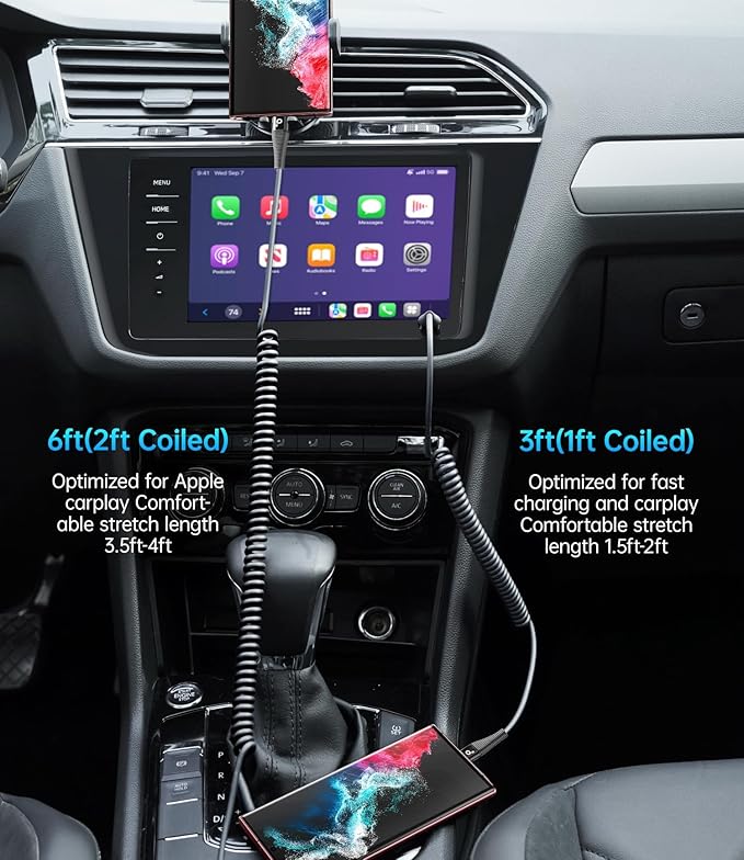 - Special Feature : USB C Cable Fast Charging, Travel, Coiled, Short, Made for Car